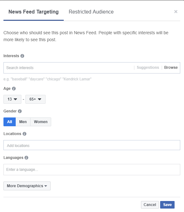 Ako na to? Zacieľte na tých vhodných ľudí spomedzi vašich fanúšikov pomocou News Feed Targetingu a Restricted Audience.